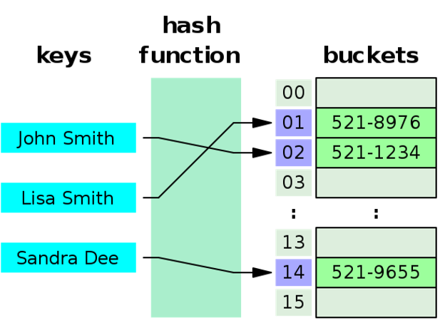 ⇒ Hash Table에서 key 값은 해시 함수를 통해 해시로 변경(index 매핑)되며, 이 Hash 값은 key와 매칭되어 bucket(저장소)에 저장됨