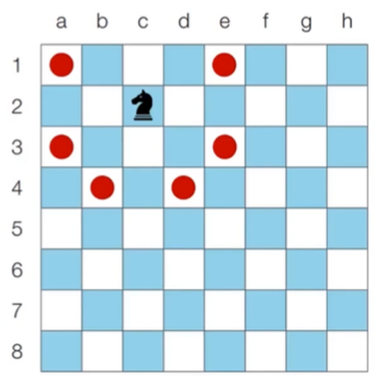 - 8 x 8 좌표 평면상에서 나이트의 위치가 주어졌을 때 나이트가 이동할 수 있는 경우의 수를 출력하는 프로그램을 작성하세요. 왕실의 정원에서 행 위치를 표현할 때는 1부터 8로 표현하며, 열 위치를 표현할 때는 a부터 h로 표현합니다.