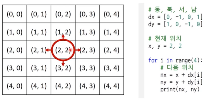 - 이때 여행가 A가 N x N 크기의 정사각형 공간을 벗어나는 움직임은 무시됩니다.