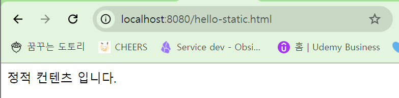 - 컨트롤러가 없기에 이후 resouces: static/hello-static.html를 찾아 이를 웹 브라우저에 반환해 줍니다.