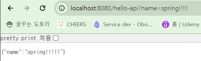 - @ResponseBody: http 응답 body에 return에 작성한 "hello" + name 데이터를 직접 넣어주겠다는 의미입니다.
