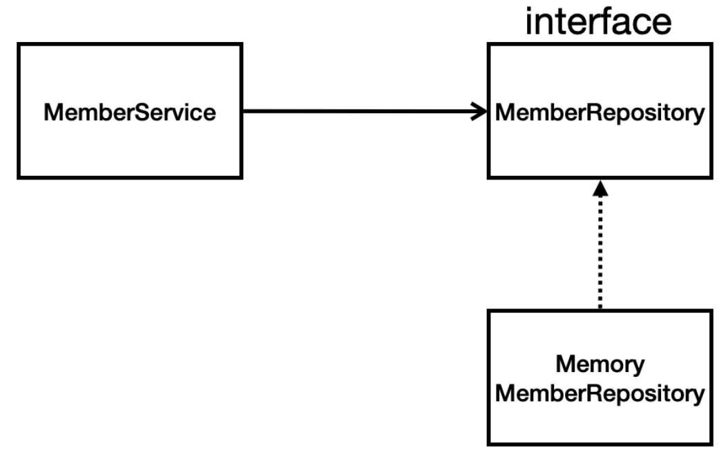 => 의존성 주입 (Dependency Injection, DI)- DI의 장점: 테스트 용이성, 유연성 증가(MemberRepository의 구체적인 구현을 바꾸고 싶을 때 MemberService 코드를 수정할 필요가 없음), 재사용성