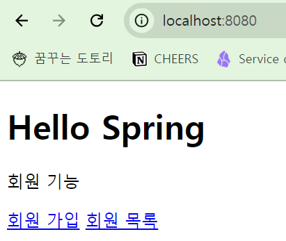 - <a href="...">: 회원 가입을 누르면 "/members/new"로 이동, 회원 목록을 누르면 "/members"로 이동합니다.