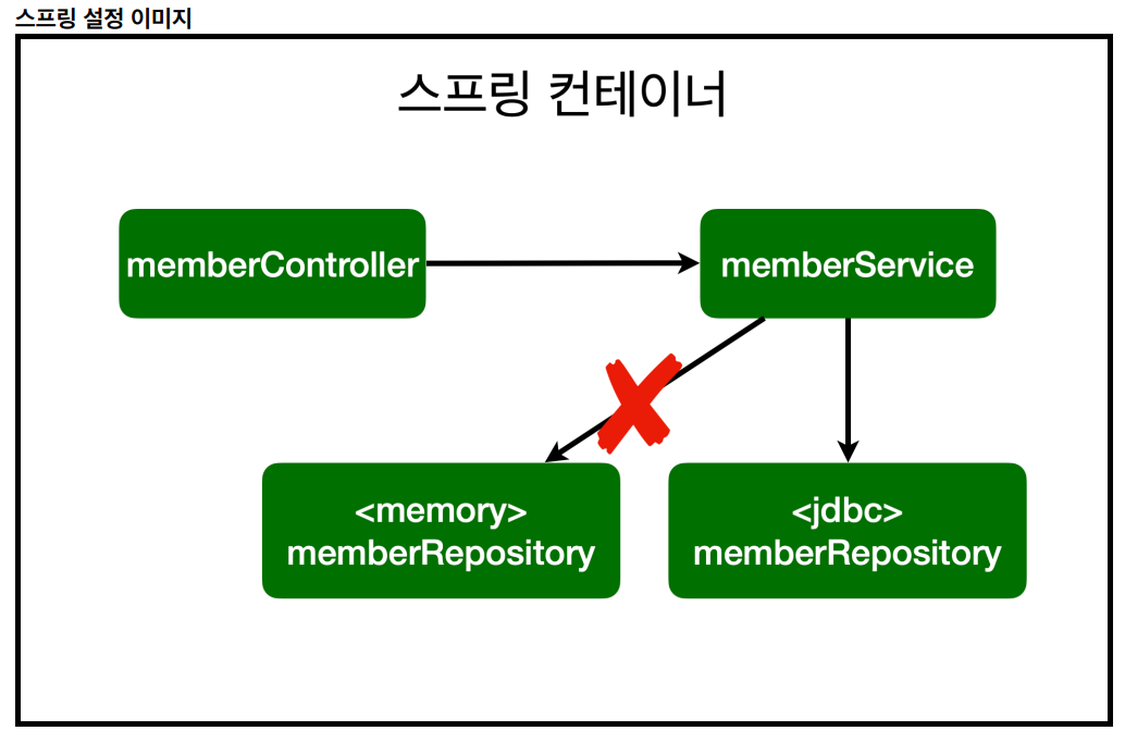 - 기존: memory버전의 memberRepository를 등록합니다.
