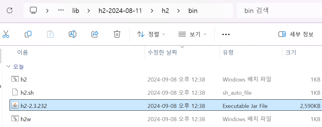 - 위 주소에서 원하는 버전의 H2 데이터베이스를 다운로드 합니다. (버전은 스프링 부트 버전에 맞춥니다.)