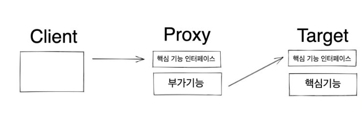 프록시란 대리자라는 뜻으로 클라이언트가 사용하려고 하는 실제 대상인 것처럼 위장해서 클라이언트의 요청을 받아주는 역할을 합니다.