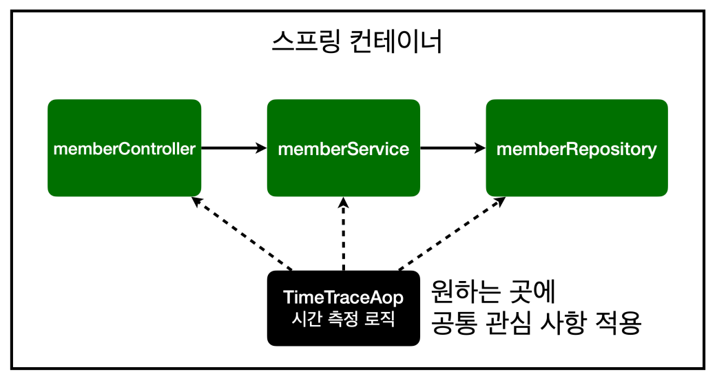- 회원가입, 회원 조회 등 핵심 관심 사항과 시간을 측정하는 공통 관심 사항을 분리합니다.