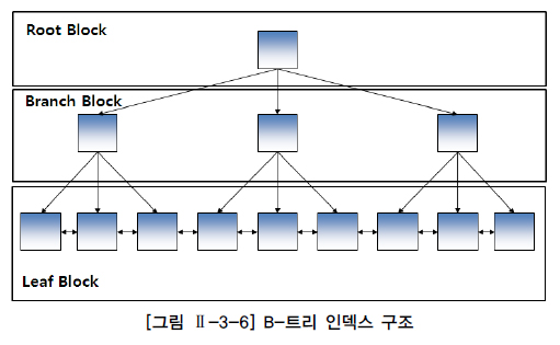 - 인덱스는 키 순서대로 정렬되며, Index Key와 RowID만 저장하기에 테이블보다 더 많은 데이터를 한 블록에 저장할 수 있습니다. (Root Node, Branch Node, Leaf Node로 구성됨)