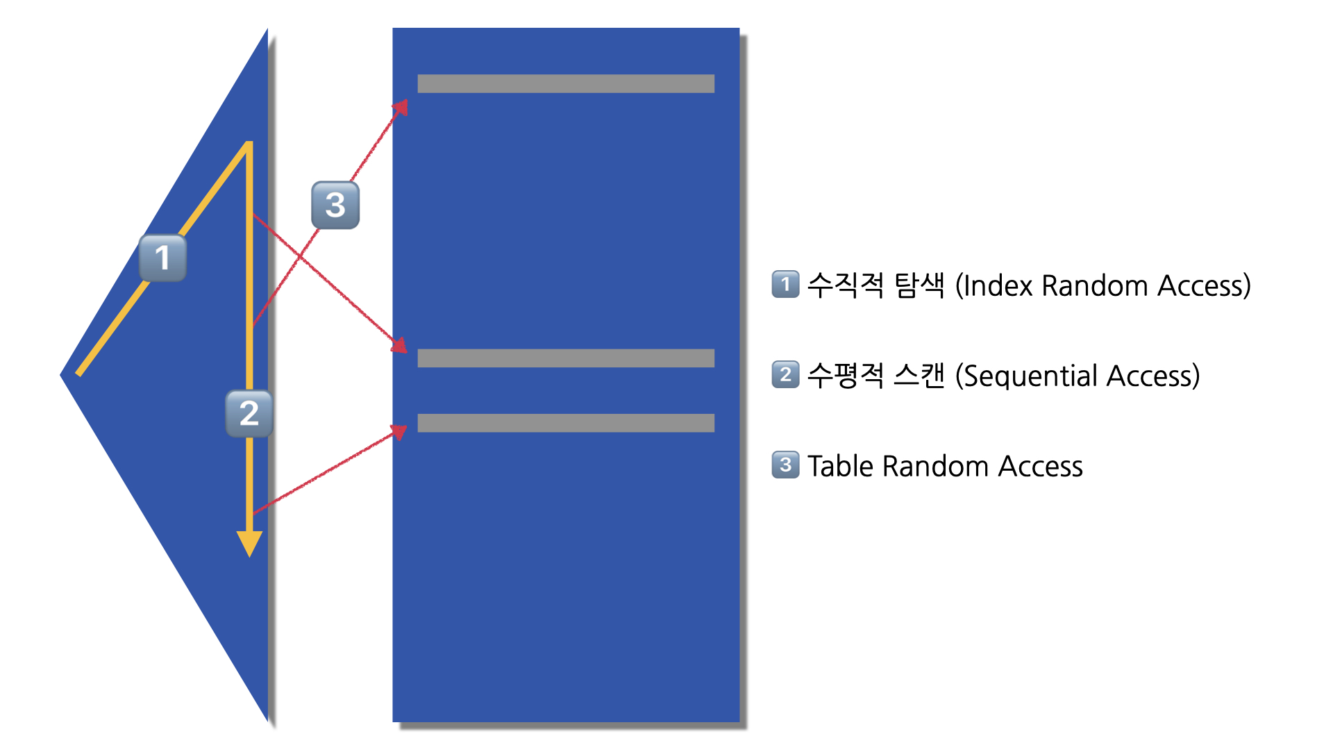 - 테이블 Random Access > 수직적 탐색 > 수평적 스캔