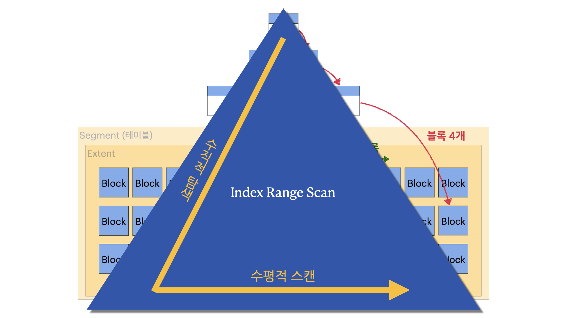 | DBA를 이용한 인덱스 수직적 탐색 | Full Scan일 경우, Multi Block I/O 가능 (하나의 익스텐트 단위로 가져옴) |